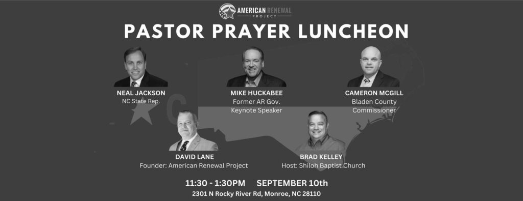You and your spouse are cordially invited to join with other NC Pastors and ministry leaders for this complimentary, private luncheon and prayer event to discuss what Spiritual Leadership in the Public Square really looks like in 2024.